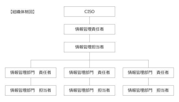 以下の組織体制図の通り、情報管理統括責任者(CISO)が当社の個人情報管理体制の最高責任者となり、情報管理統括責任者を補佐する全社管理者として情報管理責任者を配置しております。